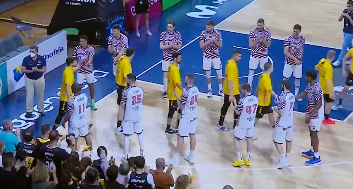 Συμμετοχή στο πάρτι αυτό, όμως είχε και μάλιστα ενεργό η αποψινή αντίπαλος της Τενερίφης για το πρωτάθλημα, η Μπασκόνια. Οι Βάσκοι παρατάχτηκαν δημιουργώντας διάδρομο για να υποδεχθούν τους τροπαιούχους και να τους χαρίσουν την αναγνώριση με ένα pasillo δείγμα αθλητικού σεβασμού.