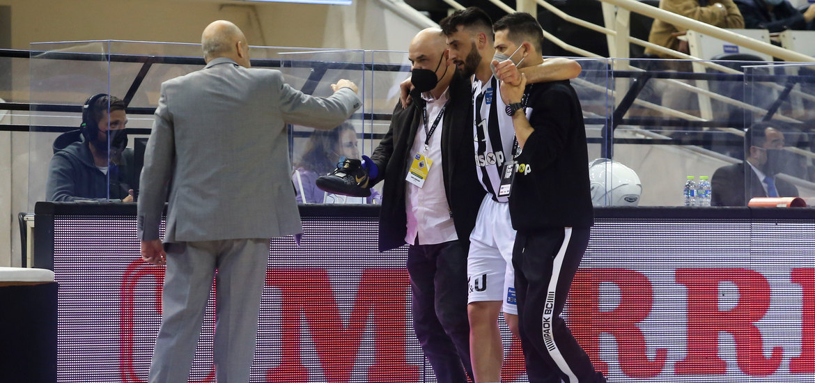 Σε μία διεκδίκηση ριμπάουντ ο γκαρντ του ΠΑΟΚ πάτησε στο πόδι αντιπάλου του και υπέστη διάστρεμμα, με αποτέλεσμα να αποχωρήσει υποβασταζόμενος προς τον πάγκο της ομάδας του...