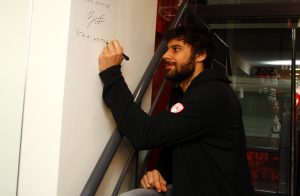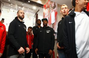 Βασίλης Σπανούλης: «Μακάρι να υπάρξουν ακόμα περισσότερα καταστήματα σαν αυτό σε όλα τα μέρη της πόλης. Είναι ωραίο να αγοράζουν τη φανέλα σου. Ο Ολυμπιακός έχει πολλούς παίκτες που είναι πρότυπα και ινδάλματα για πολλά μικρά παιδιά. Είμαι υπερήφανος για τους συμπαίκτες μου. Παίζουμε καλό μπάσκετ. Θέλουμε να προχωράμε βήμα βήμα, παιχνίδι με το παιχνίδι, μέχρι να φθάσουμε εκεί που θέλουμε. Κανένας δεν έχει κάνει συμβόλαιο με τους τίτλους, όμως είμαστε υποχρεωμένοι να παλεύουμε σε κάθε παιχνίδι και να διεκδικούμε κάθε πιθανό τρόπαιο».