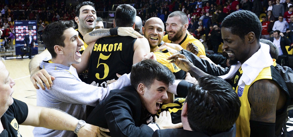 Συνεχίζοντας, αναφέρεται στο κείμενο: «Ο "κιτρινόμαυροι" είχαν ρεκόρ κάτω από 50% για οκτώ εβδομάδες. Τη νίκη επί της Ρόζα Ράντομ ακολούθησε μία ήττα από τη Στρασμπούρ. Τη νίκη επί της Ολίμπια Λιουμπλιάνα μία ήττα από την Μπαϊρόιτ. Η ΑΕΚ έκανε διαδοχικές νίκες για πρώτη φορά την 8η και την 9η αγωνιστική, βρίσκοντας ρυθμό με το "διπλό" στην έδρα της Εστουδιάντες και τη νίκη επί της Βενέτσια. Αυτό το "σκούπισμα" κόντρα στους "ραγκάτσι" τούς έδωσε ελπίδα, ανεβάζοντας το ρεκόρ τους στο 5-4. Μετά ακολούθησαν πάλι εναλλάξ νίκες και ήττες κι έφθασαν όλα στο τελευταίο ματς. Τότε, που όλα ήταν δύσκολα, έδωσα την μπάλα στον Ντούσαν Σάκοτα. Το μεγαλύτερο σουτ της σεζόν (μέχρι τότε τουλάχιστον) έφερε την ΑΕΚ να τελειώσει την κανονική περίοδο με ρεκόρ 8-6 και την έστειλε σε τρελή τετραπλή ισοβαθμία, που ήταν αρκετή για να τη φέρει στην τρίτη θέση και στην φάση των "16".