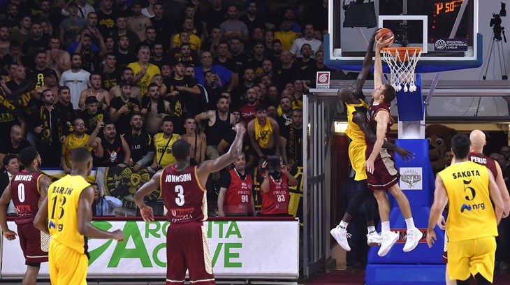 Ο Μάικ Μπράμος σχεδόν τον έκοψε, ο Ντιλρόι Τζέιμς όμως κατάφερε με κάποιον τρόπο να σημειώσει το νικητήριο κάρφωμα στο φινάλε της παράτασης στην Βενετία κόντρα στην Βενέτσια, δίνοντας στην ΑΕΚ τη μόνη νίκη της στα πρώτα τρία παιχνίδια στη φάση των ομίλων. Σκεφτείτε αυτό: ένα εκατοστό πιο χαμηλά και η ΑΕΚ θα ξεκινούσε με 0-3. Σε έναν όμιλο με Μπάνβιτ, Στρασμπούρ, Βενέτσια, Μπαϊρόιτ και Εστουδιάντες. Θα ήταν δύσκολο να ανακάμψει. Αλλά κέρδισε κι άντεξε όταν η Ρόζα Ράντομ στην τέταρτη αγωνιστική ξέφυγε με διψήφια διαφορά, όταν όλοι περίμεναν το χειρότερο. Ευτυχώς για αυτούς υπήρχε ο Μάνι Χάρις σε εκείνο το παιχνίδι κι έσωσε την ημέρα».
