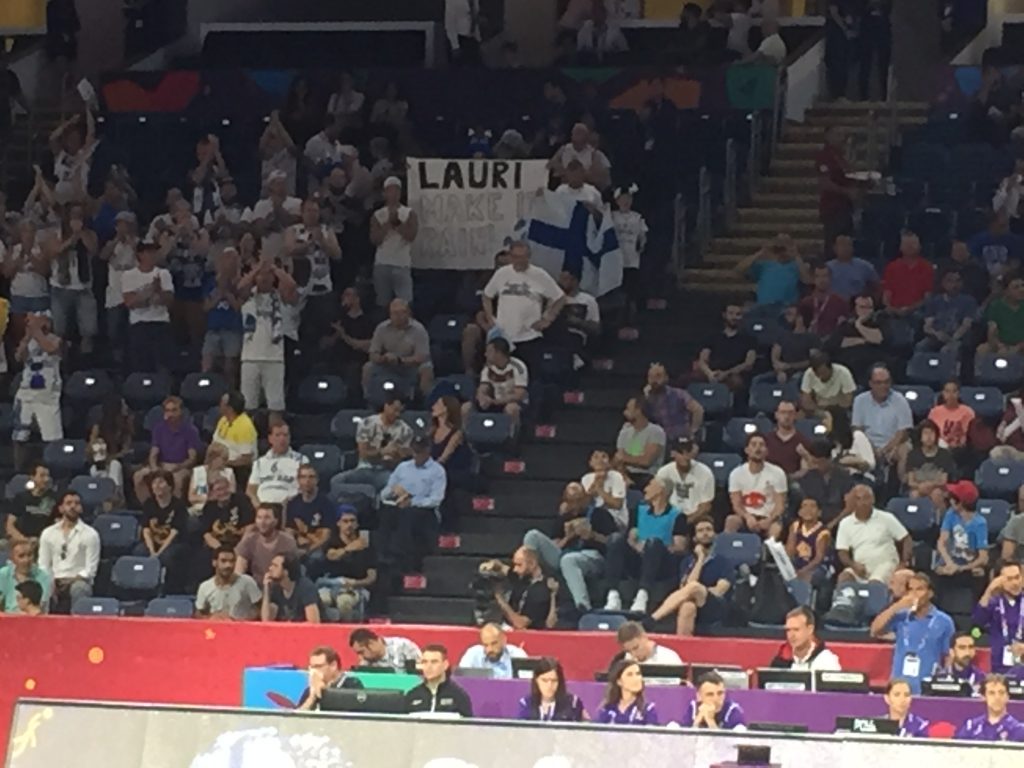 Ή ο τεράστιος Άρβιντας Σαμπόνις, που παρακολούθησε τον αγώνα Ιταλία-Φινλανδία ως... κοινός θνητός από την εξέδρα και φυσικά τώρα περιμένει την αναμέτρηση της δικής του ομάδας, της Λιθουανίας με την Ελλάδα.